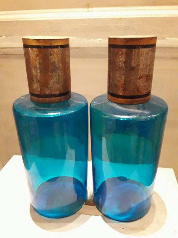 2 anciens flacons d’apothicaire en verre bleu – circa 1890 – Tissier Paris