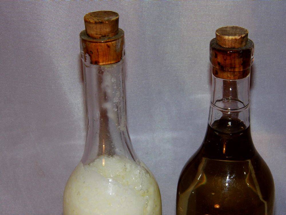 AUTHENTIQUE 2 bouteilles de laboratoire en verre HUILE LESIEUR » non ouverte et pleine ! » – Non commercialisable provenant des usines » LESIEUR » à Coudekerque-Branche dans les années 40-50 –