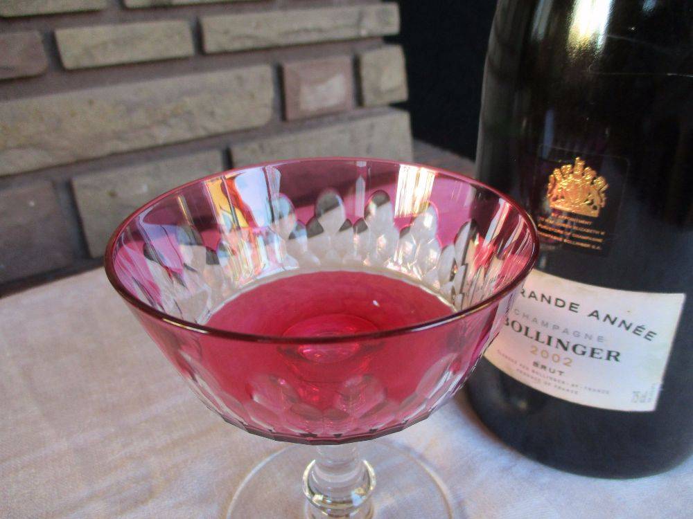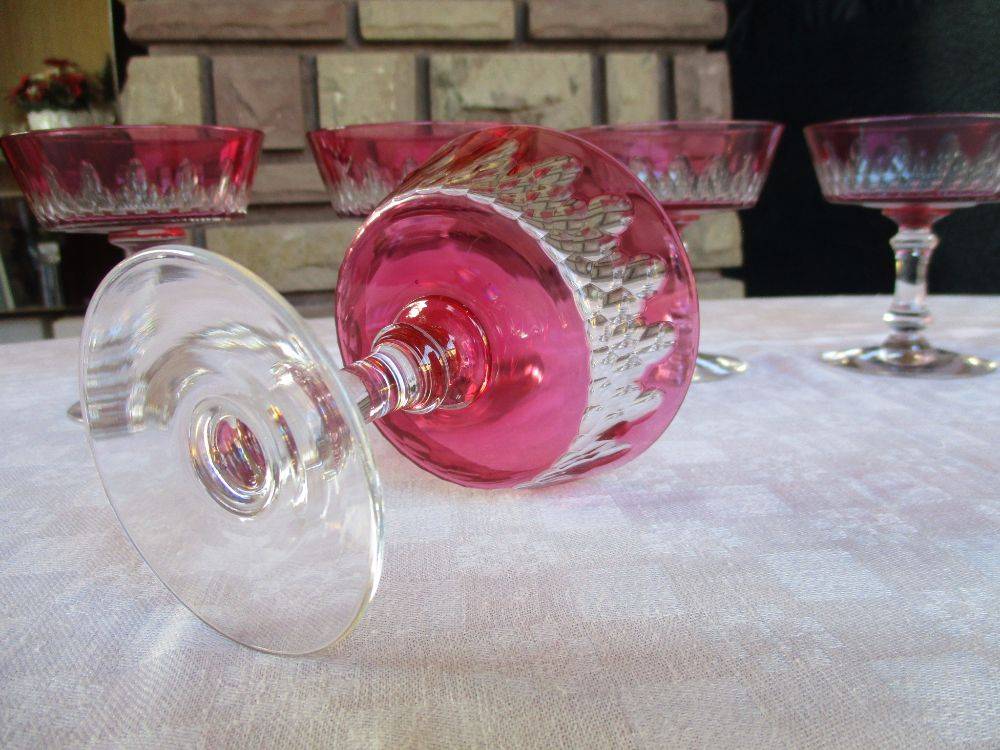 6 coupes à champagne en cristal de Baccarat, modèle Champigny. Couleur rose.