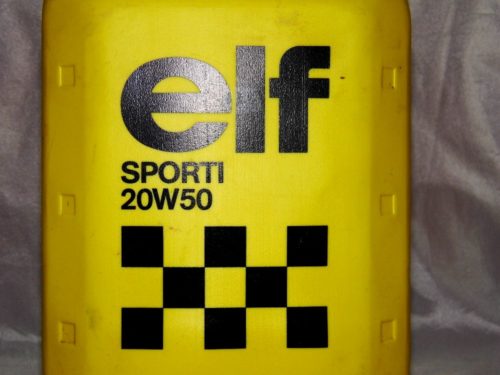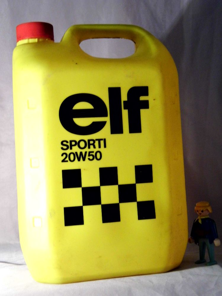 Ancien bidon d’huile ELF SPORTI 20W50 bouchon rouge – 5 litres