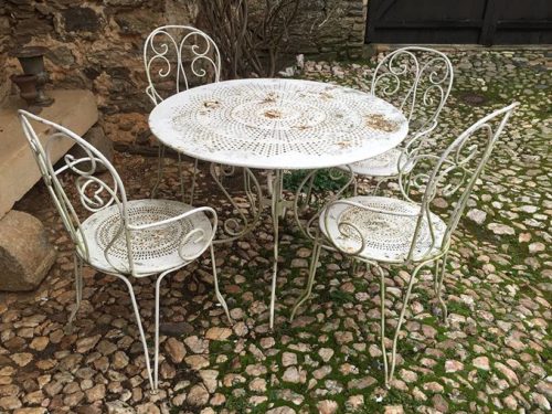 Ancien salon de jardin en fer forgé.