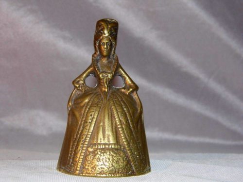 Ancienne Cloche clochette de table en bronze theme : Femme élégante – Sonnerie fine et retentissante