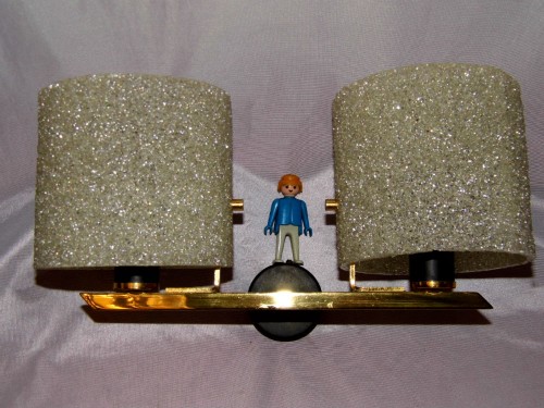 Élégante applique murale à 2 globes des années 60 scandinave – Structure en laiton – Fonctionne parfaitement – 2 Douilles baïonnette –