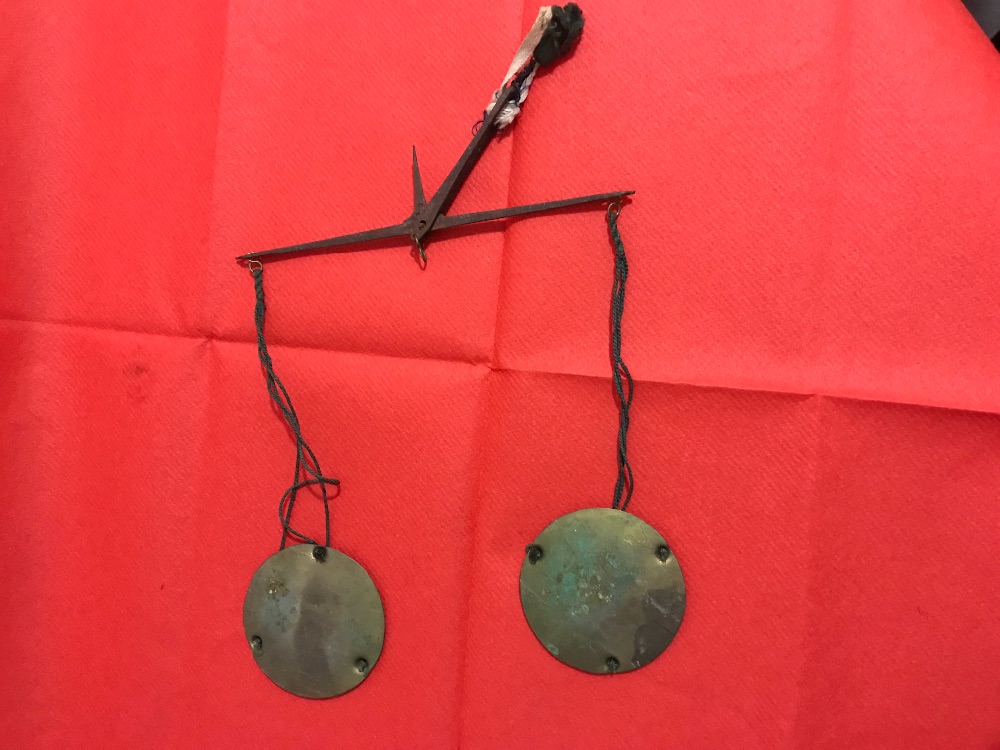 Balance à trébuchet et poids monétaires XVII ou XVII