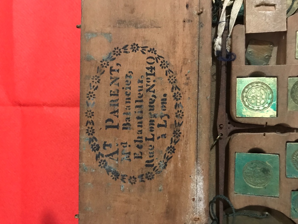 balance à trébuchet avec poids monétaires (7) , XVII ou XVIII siècle boîtier en bois , se référer aux photos pour complément description