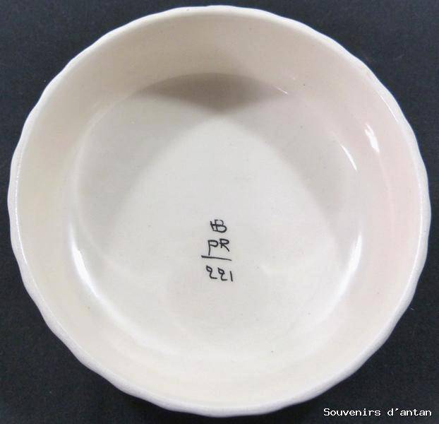 Frise rose en pourtour et guirlande fleurie sur le couvercle godronné.