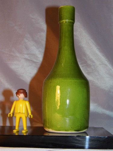 Céramique dans le design de Ruelland, Rénauleau , Madoura, Capron … – Bouteille céramique verte signée » FD » en creux – Céramique vernissée – Couleur verte –