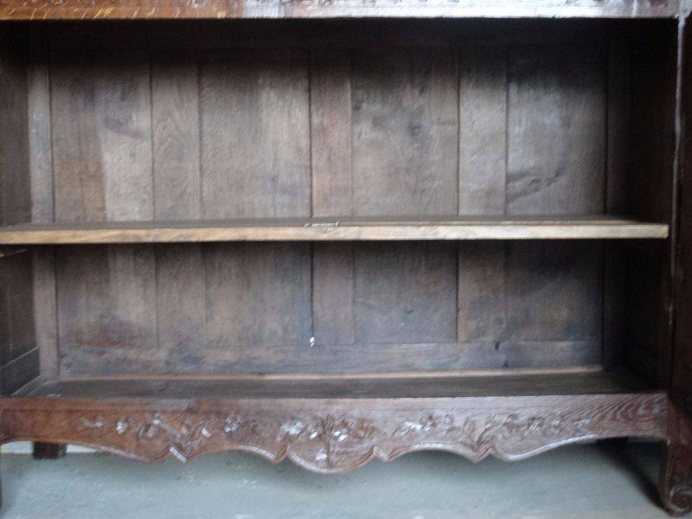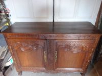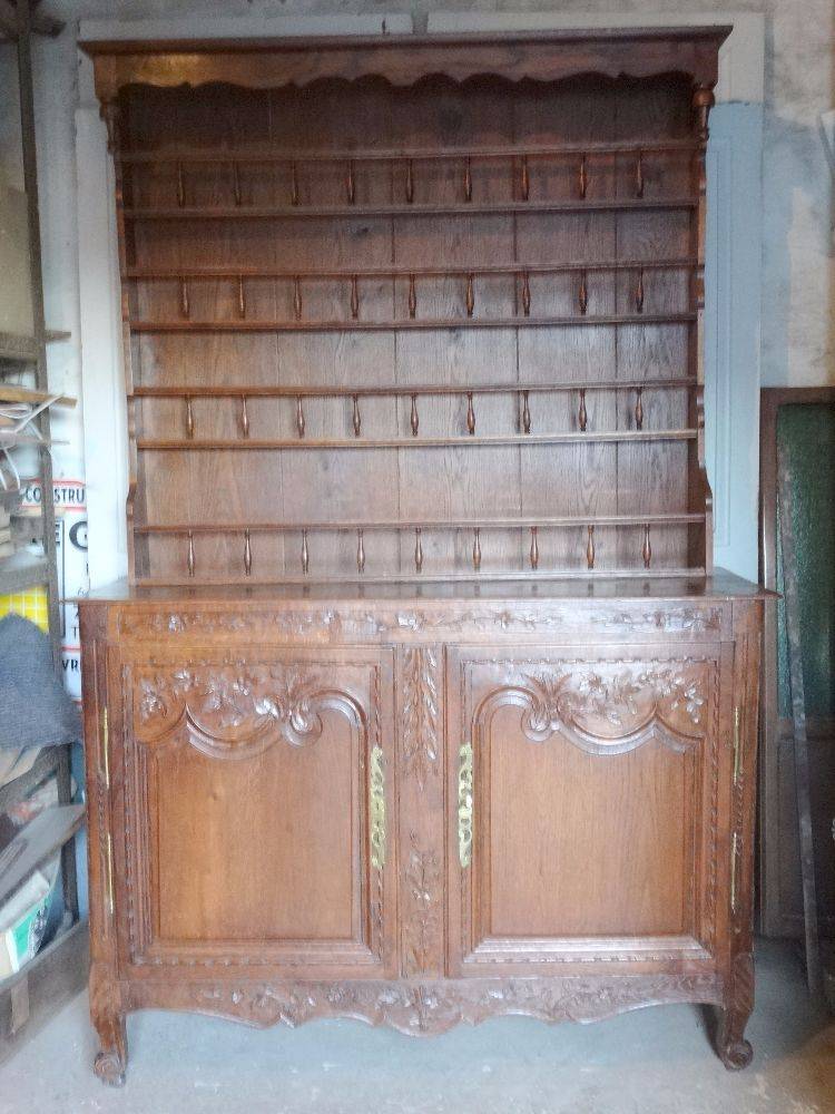 Buffet ou bahut normand avec vaisselier en chêne sculpté