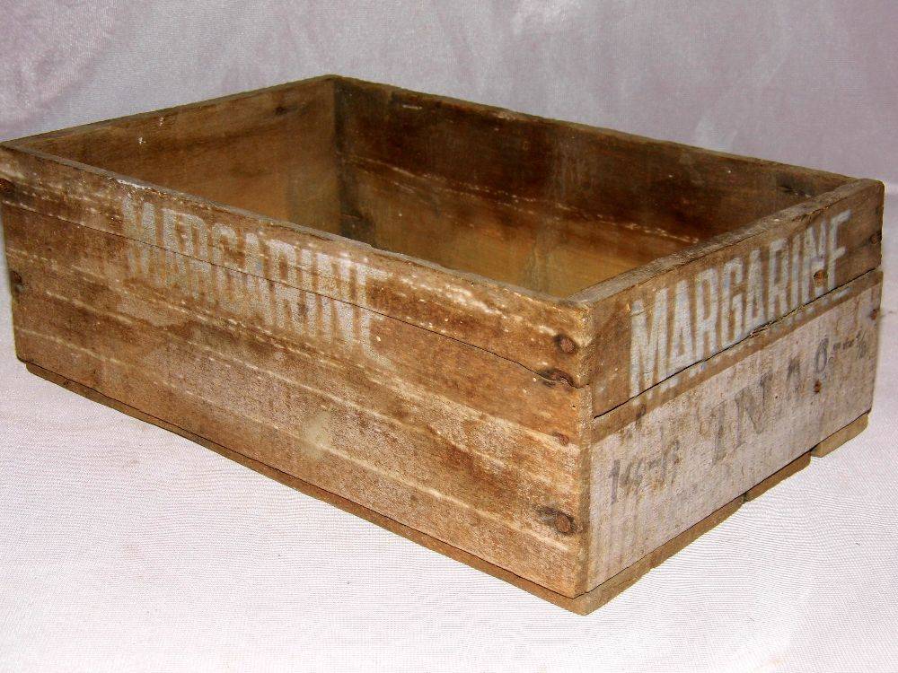 Ancienne caisse publicitaire  » MARGARINE « – Nombreux marquages