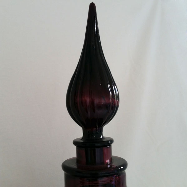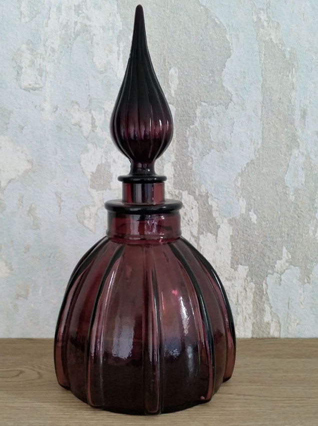 Carafe apéritif avec bouchon stylisé, de couleur lie de vin.