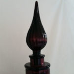 Avec un côté très rétro, elle est en verre très épais, d’un diamètre est de 17 cm et sa hauteur est de 36 cm, il faut ajouter que trois lettres « NYA » sont moulées dans le fond, enfin originale et élégante, elle est un très bel objet de décoration et elle peut bien sûr servir.