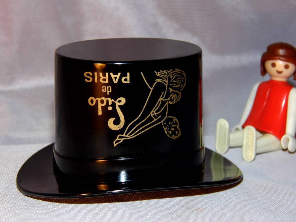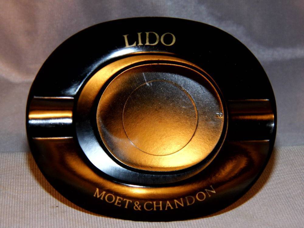 Cendrier publicitaire en bakélite – CHAPEAU HAUT de FORME – LIDO PARIS CHAMPAGNE MOËT et CHANDON – Inscriptions or – Jamais utilisé – Aucun manque