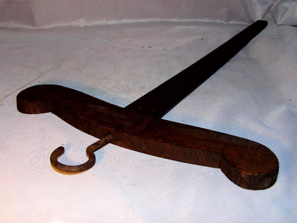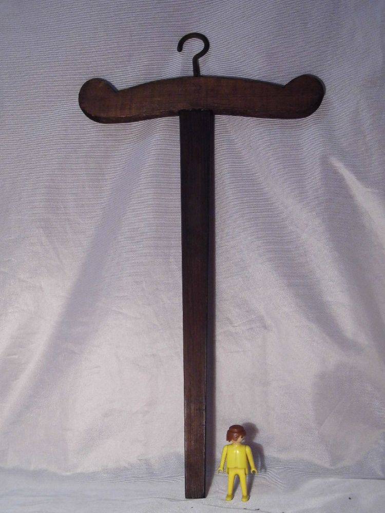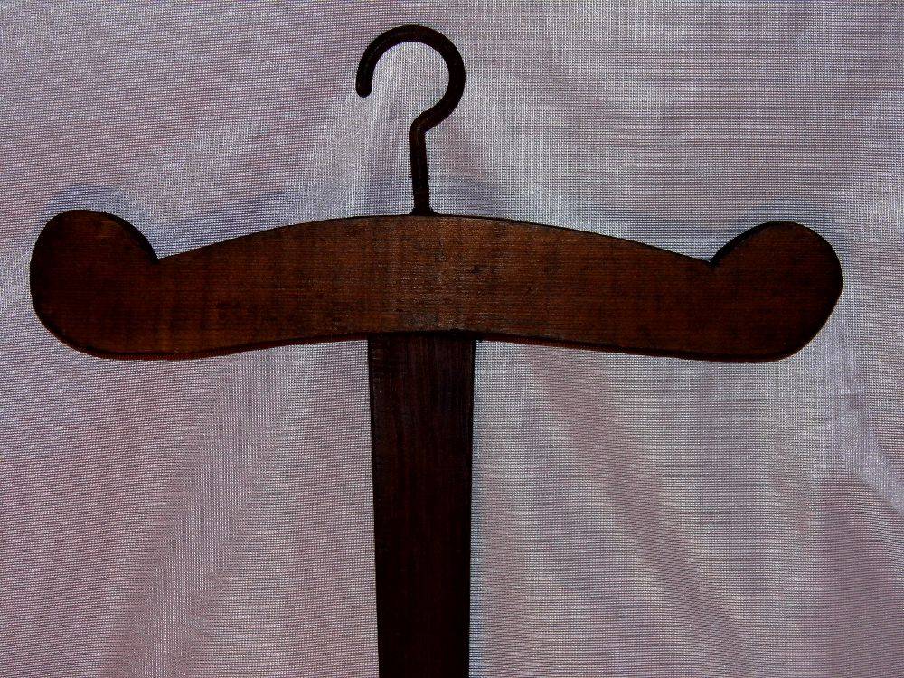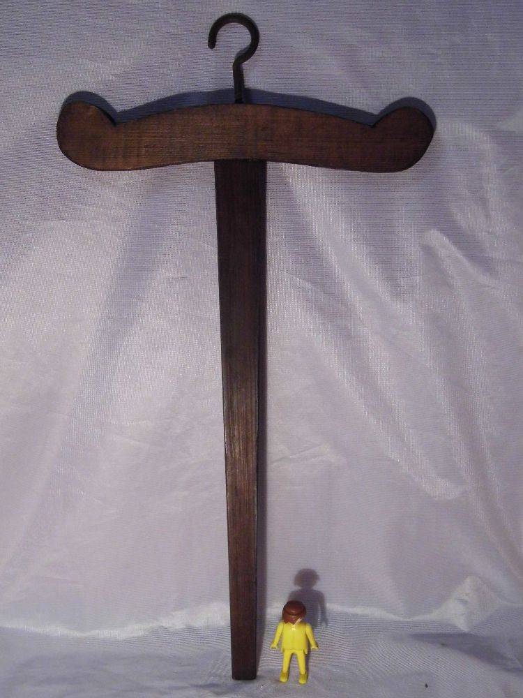 Ancien cintre en T en bois avec tige permettant de suspendre les vêtements en hauteur – Crochet métal – Bois très propre – Aucune déformation – Objet très vintage