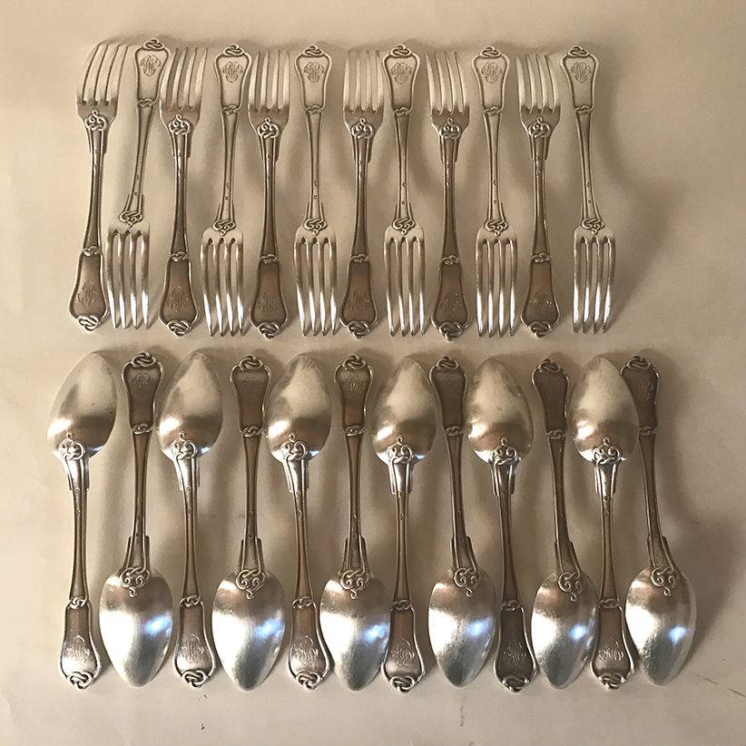 Couverts en argent massif, poinçon Minerve 2,23 kg