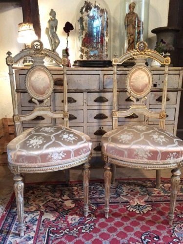 Travail exceptionnel pour ces deux chaises qui en deviennent de vrais bijoux.