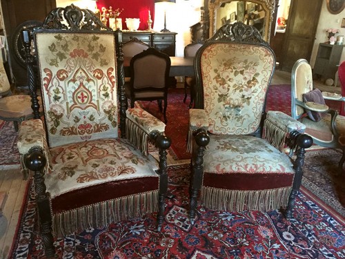 Exceptionnelle paire de très grands fauteuils Napoleon III