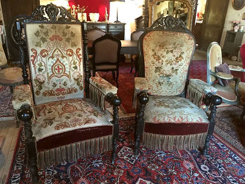 Cette paire de fauteuils mérite nettoyage et restauration.