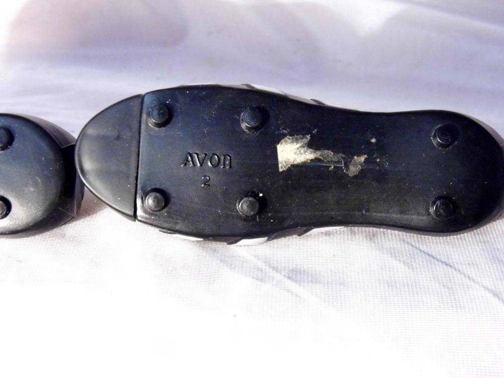 Paire de chaussures flacon de parfum AVON – Les bouteilles sont encore pleine – Numéro 1 sur une chaussure et numéro 2 sur l’autre donc une paire – Présence des 4 crampons –