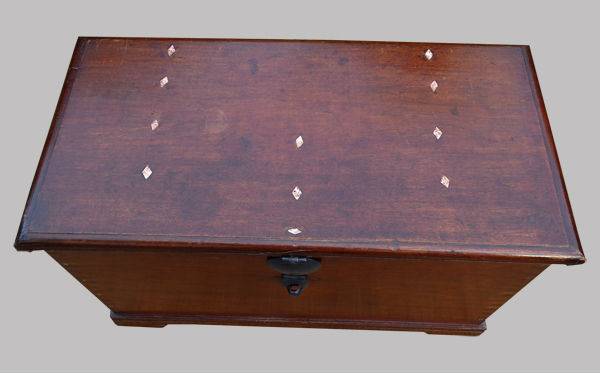 Beau coffre ancien – Grand coffre de marine en acajou.