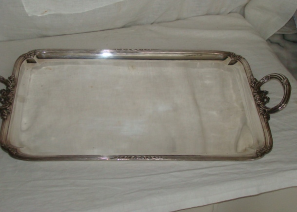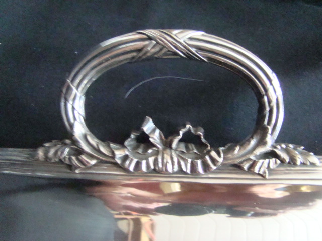 Grand plateau en métal argenté de style Louis XVI de marque « Emile Puiforcat »