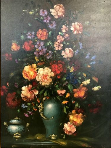 Grande huile sur toile « Bouquet de fleurs » signée Bohor