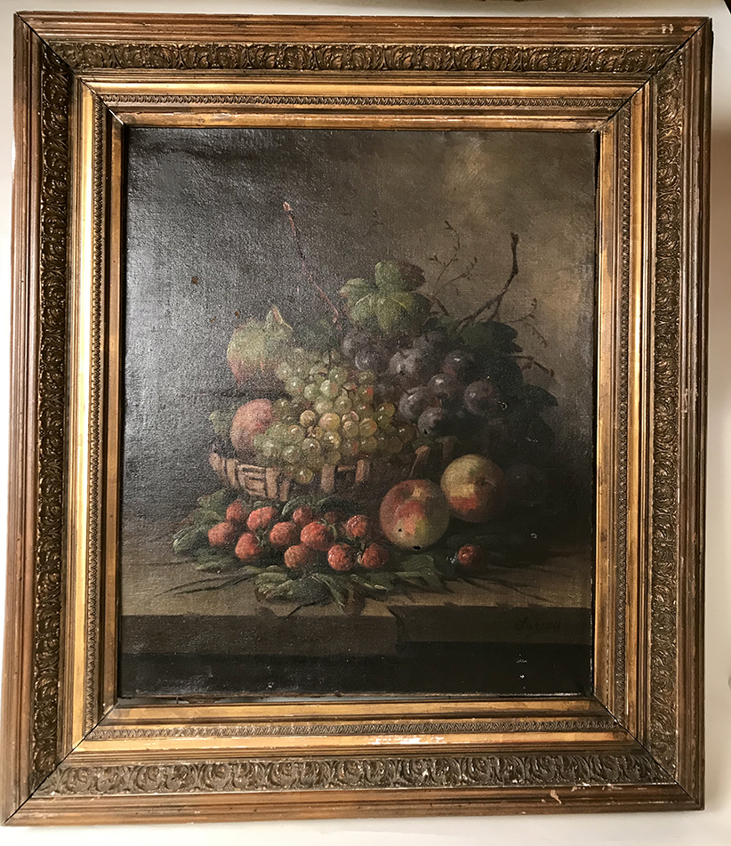 Grande huile sur toile, nature morte aux fruits vers 1880 Signée Sureau
