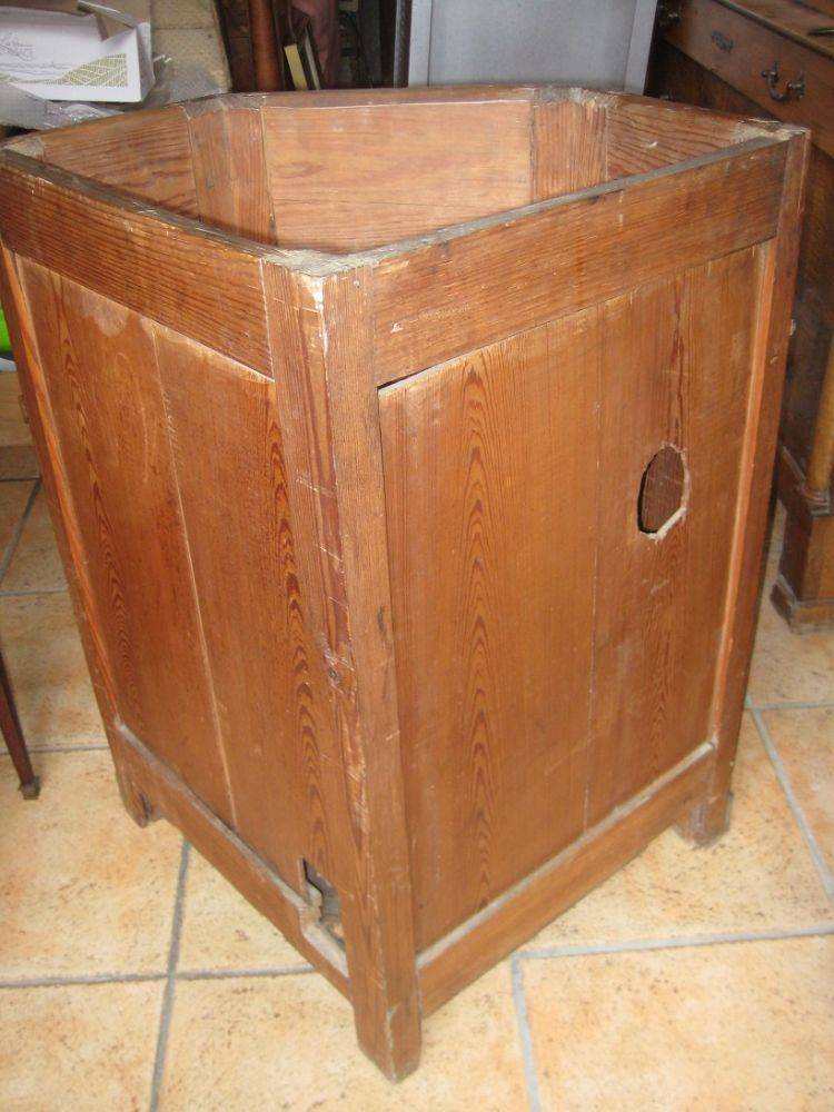 Très beau lave mains de coin, anciens en faïence craquelée et bois naturel, dimensions coté 50 cm sur une hauteur de 82 cm, on peut rajouter une plinthe,
