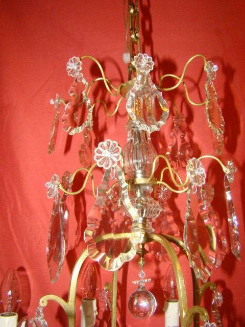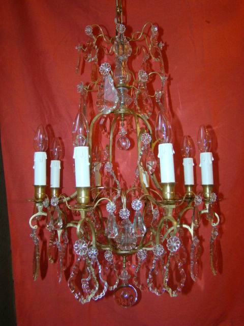 lustre bronze et cristal type à cage à 8 lampes époque début 20ème