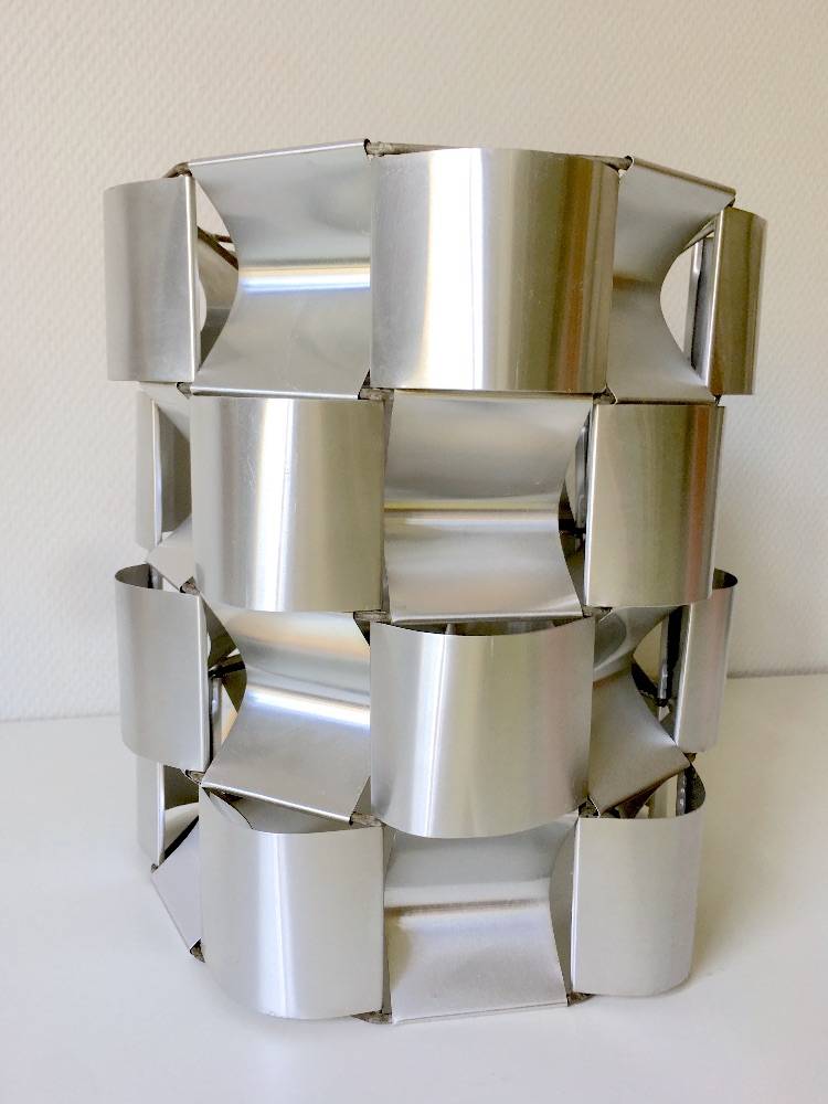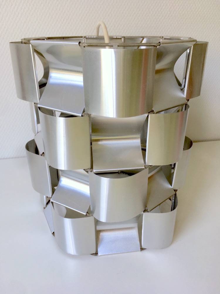 Splendide lustre ou suspension Max Sauze, des années 70 en métal argenté, trés design. Composé de lamelles de métal alternant concave et convexe.