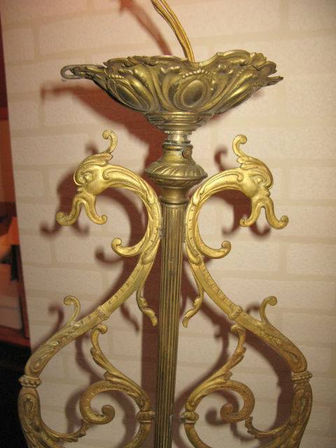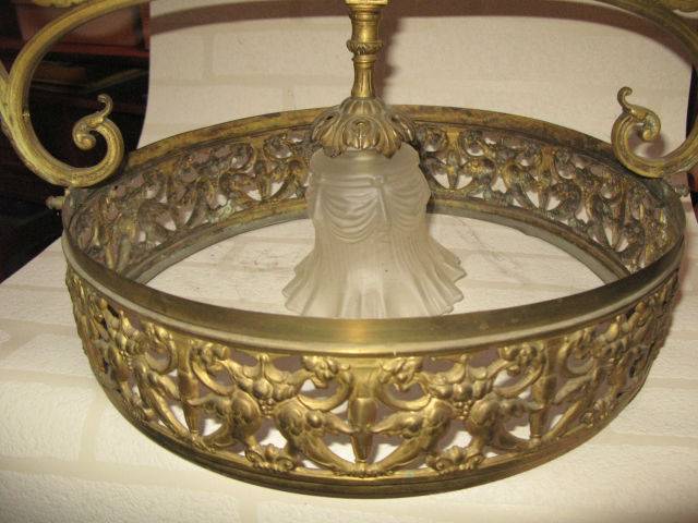 Lustre en bronze Napoléon III. 3 ampoules, les tulipes sont dépareillées.