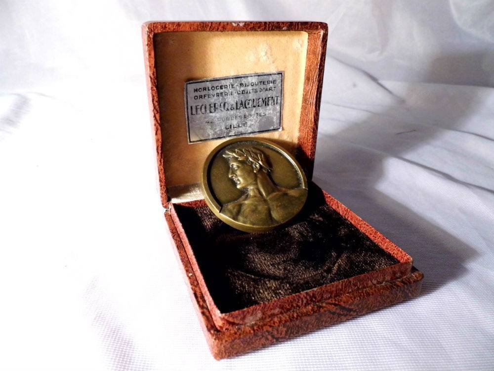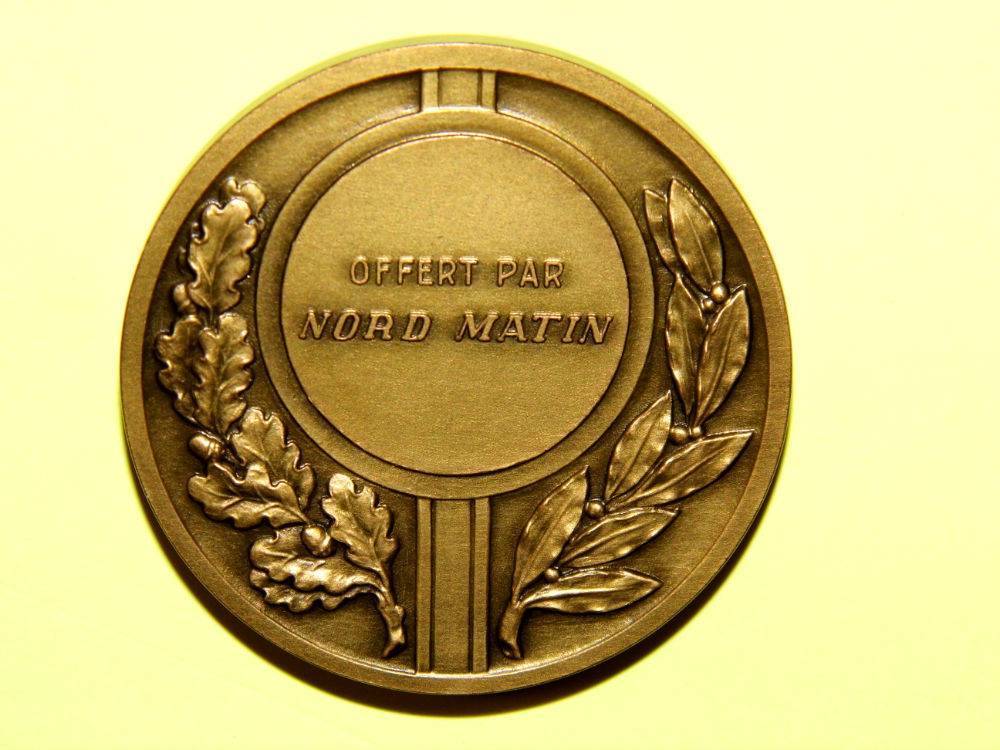 Médaille en bronze + écrin d’origine – Signée en creux » DORIER AUGIS » Offerte par NORD MATIN – Très beaux reliefs – Au flanc est gravé : Bronze