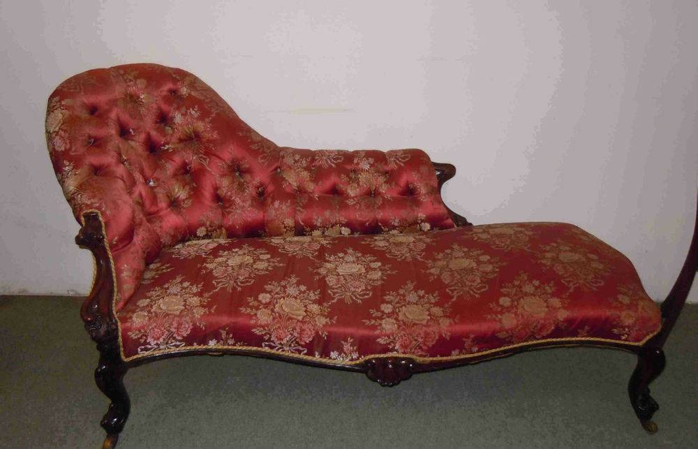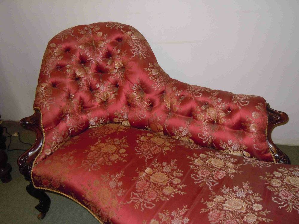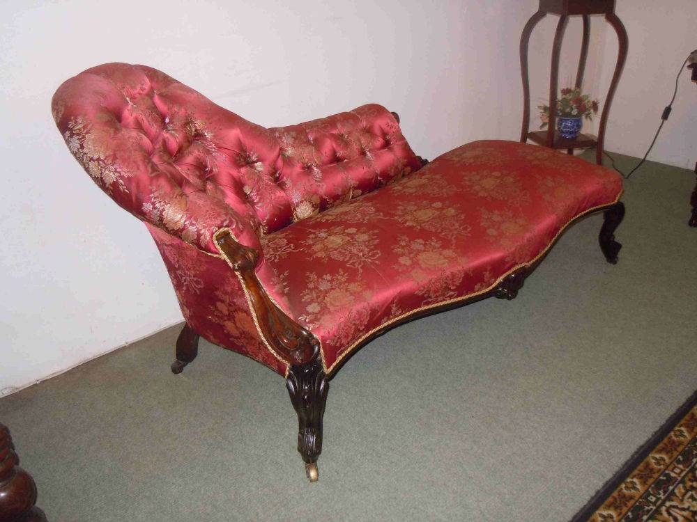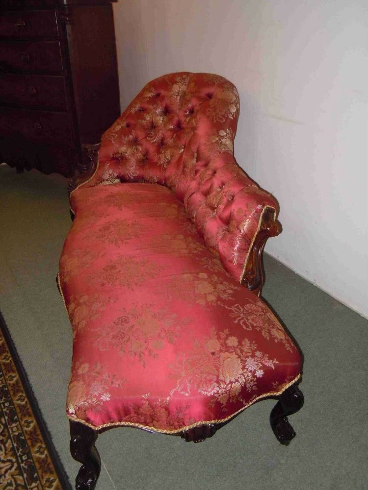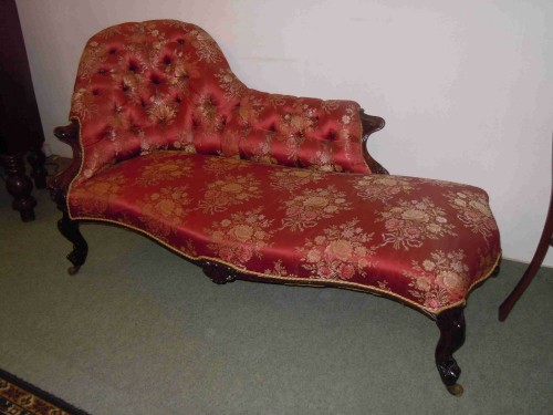 Exceptionnelle Méridienne, d’époque Victorienne, en Acajou, richement moulurée et sculptée, au galbe très élégant, reposant sur pieds galbés se terminant par les roulettes d’origine.
