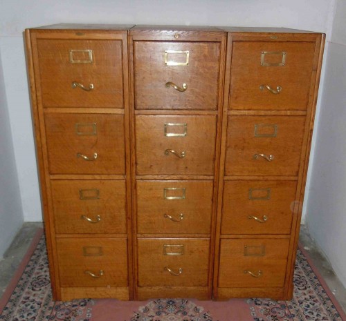 Meuble classeur ,casier, meuble de rangement composée de trois parties, chaque classeur comprenant 4 tiroirs, donc au total 12 tiroirs, au design des années 50.