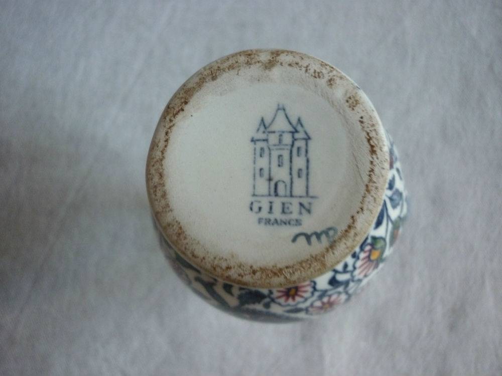Diamètre 6,5 cm ,hauteur 13,5 cm , petit vase pour vitrine en faïence de Gien, bon état