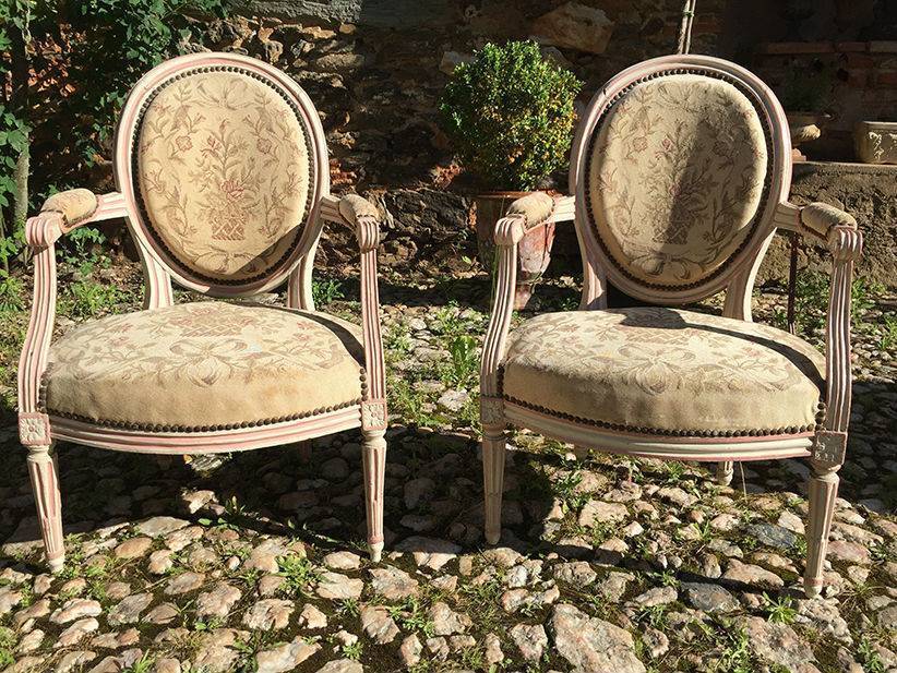 Paire de fauteuils dossiers médaillon Style Louis XVI