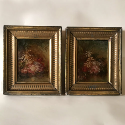 Paire d’huiles sur carton “Bouquets de fleurs”. XIXe