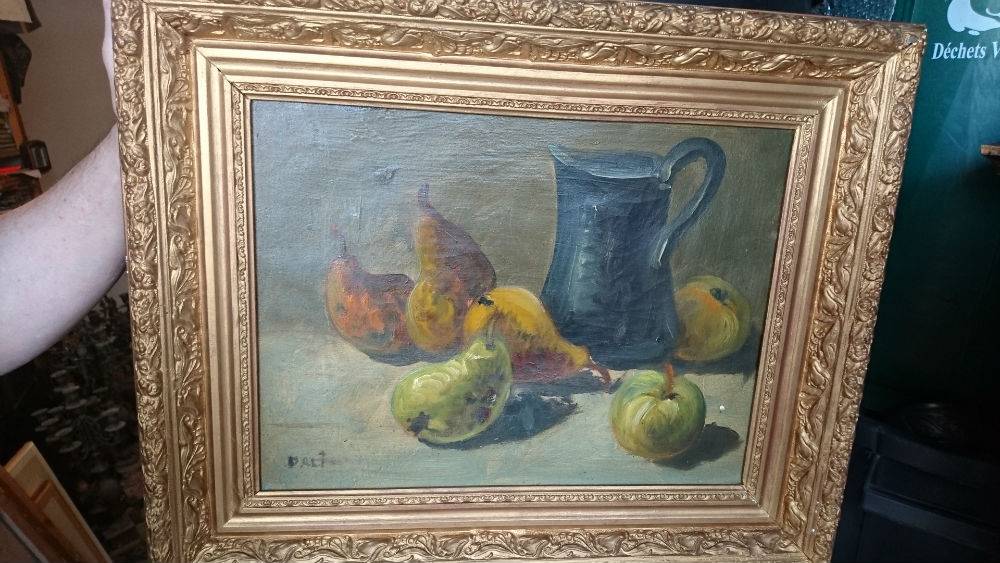 Jolie peinture sur toile représentant une nature morte aux fruits, signé DALT, du 19ème siècle.