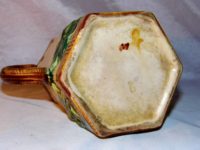 ANCIEN PICHET BARBOTINE ART NOUVEAU en faïence pas d’inscriptions mais attribué au vu de sa conception à la Faïencerie d’onnaing ( nord ) France – Chiffre 2 en creux sous socle – Petit éclat de surface au socle ( voir photo ) – 1 léger petit cheveu à coté du bec verseur ( se voit très peu )