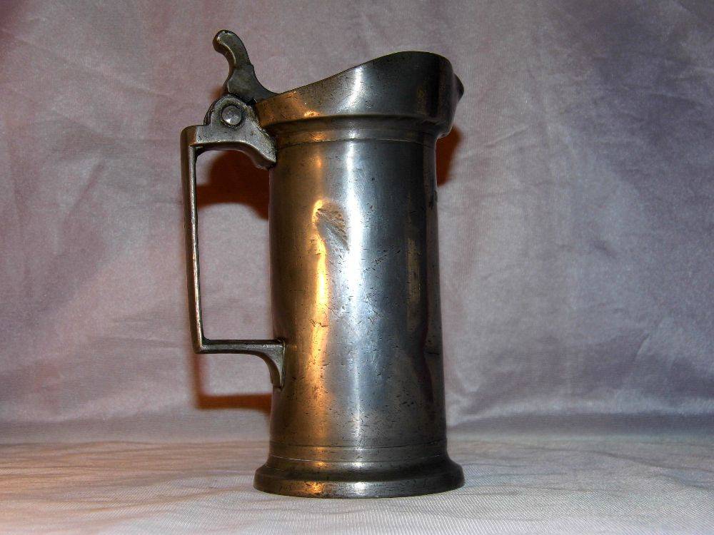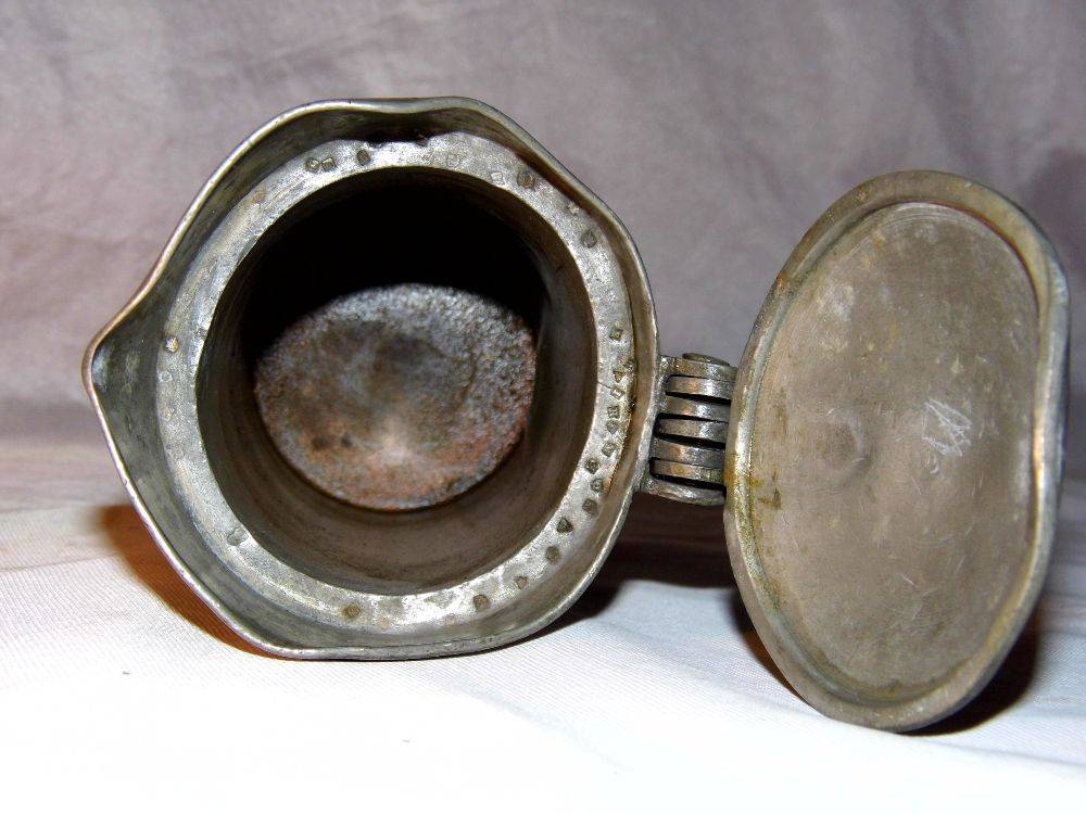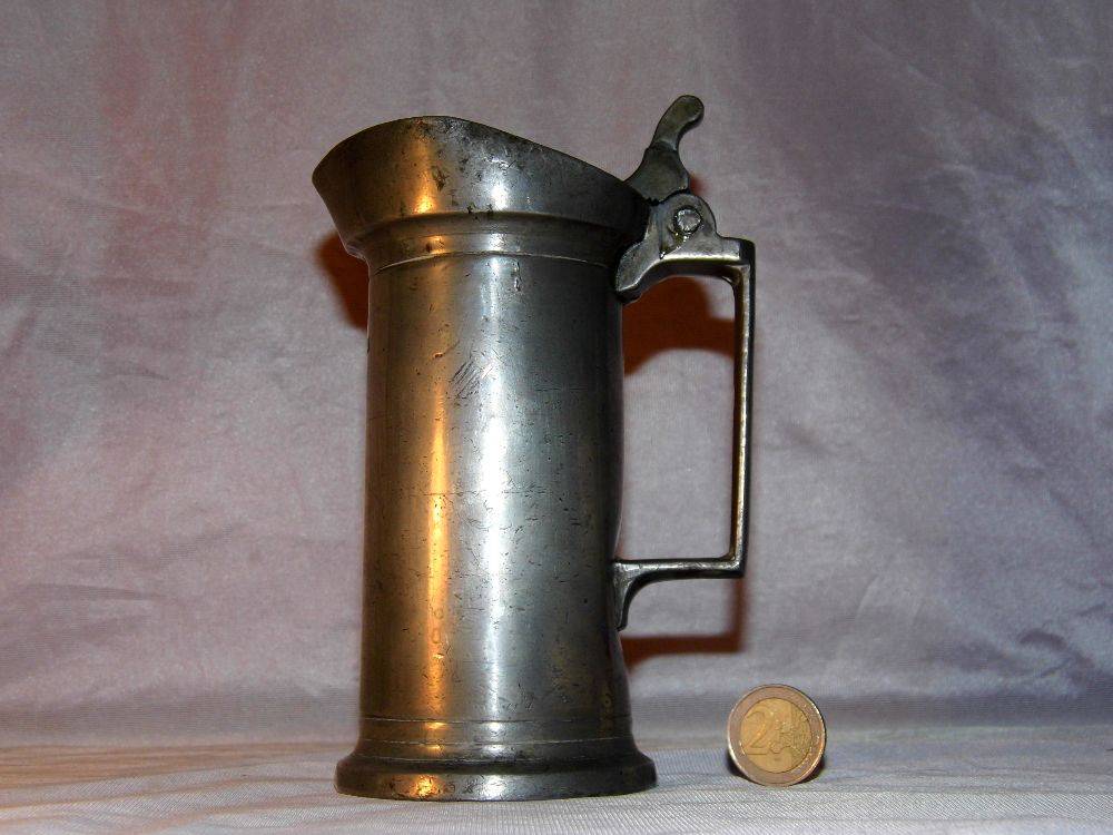 Authentique pichet ancien en étain » BUDOT OUDART LILLE » – 19 eme siècle – Quelques traces d’usures et chocs – Bon fonctionnement de la charnière et couvercle