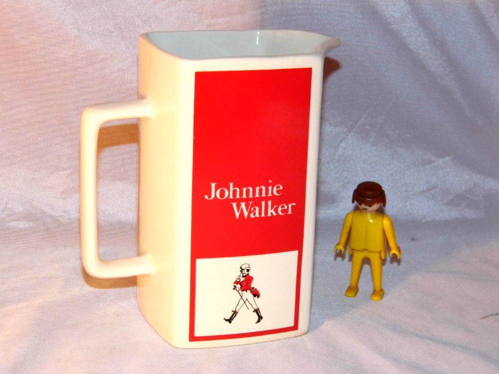 Superbe pichet publicitaire JOHNNIE WALKER SCOTCH WHISKY – Tamponné : WADE ENGLAND – Couleurs fraiches ROUGE et BLANC IVOIRE – Sérigraphie sur les 3 faces