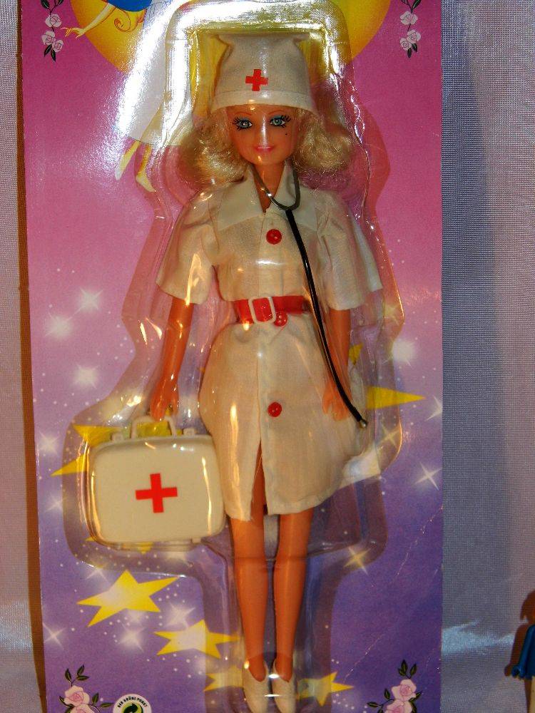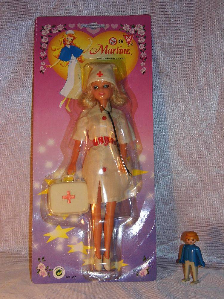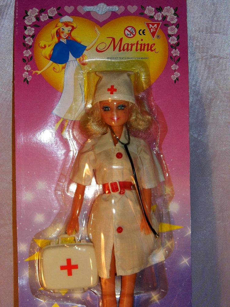 Poupée » MARTINE » dans son costume d’ infirmière – Sous blister – jamais ouvert – Couleurs fraiches –
