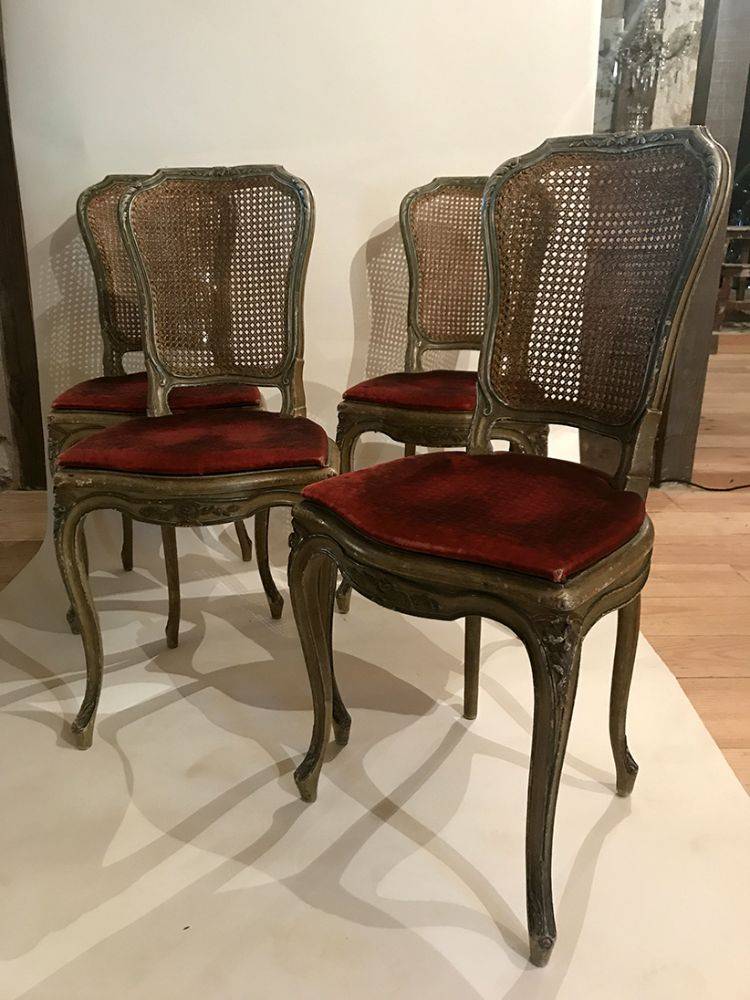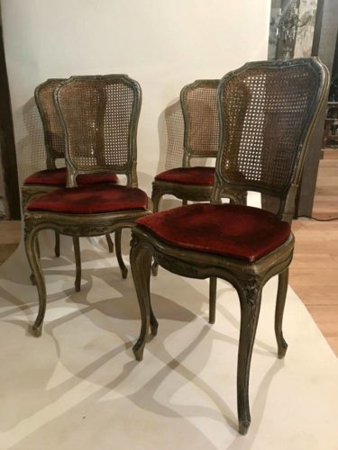 Quatre chaises de style Louis XV bois laqué gris/vert