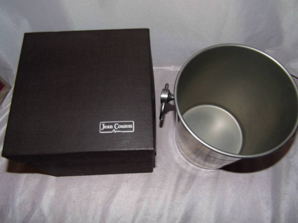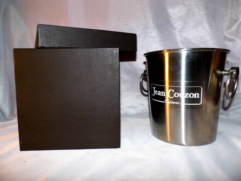 Seau à champagne ORFÈVRERIE JEAN COUZON Inox 18/10 – Aucune bosse et aucune déformation- Marquage signature en dessous du socle – utilisé 2 fois – Boite de rangement d’origine – Objet très propre et utilisable de suite – Très bonne qualité