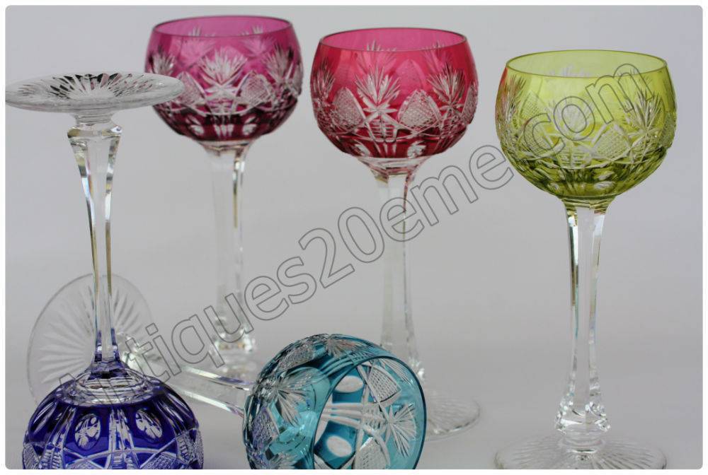 Série de 5 verres à vin du Rhin Roemer en cristal de Saint Louis Niepce
