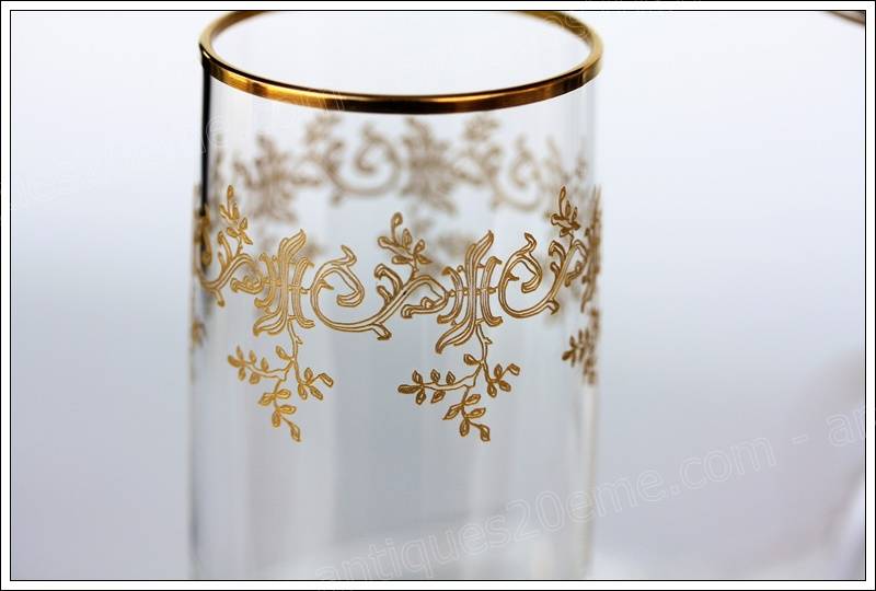 Décors de guirlandes de fleurs, gravés à l’acide et dorés à l’or 24 carats.
