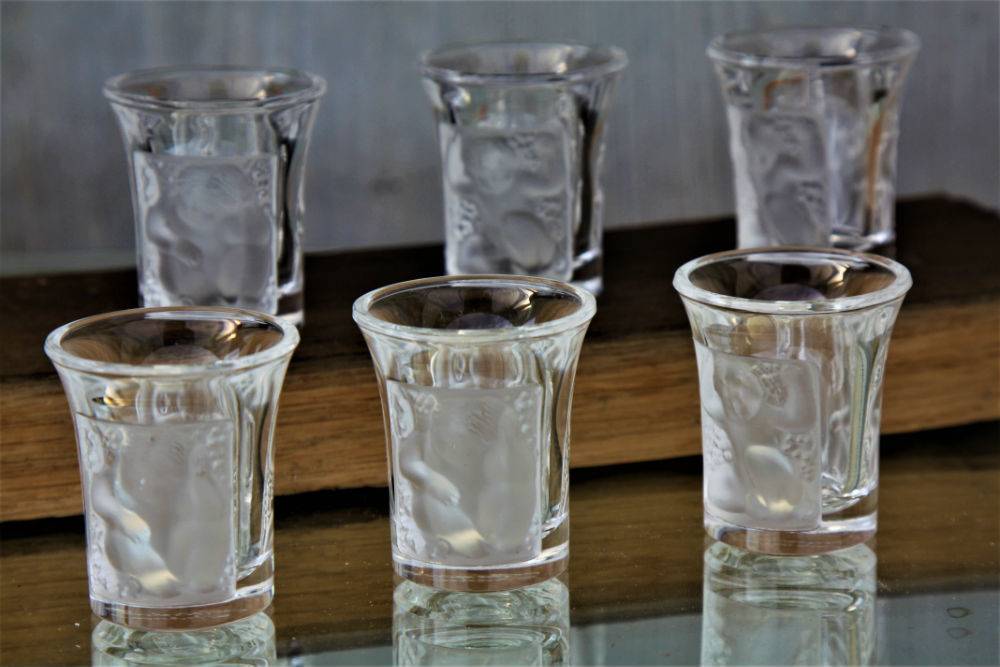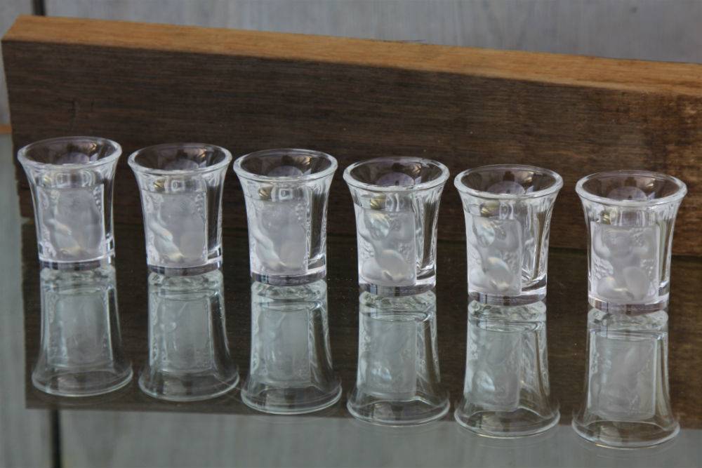 Série de 6 verres à liqueur en cristal de Lalique modèle enfants