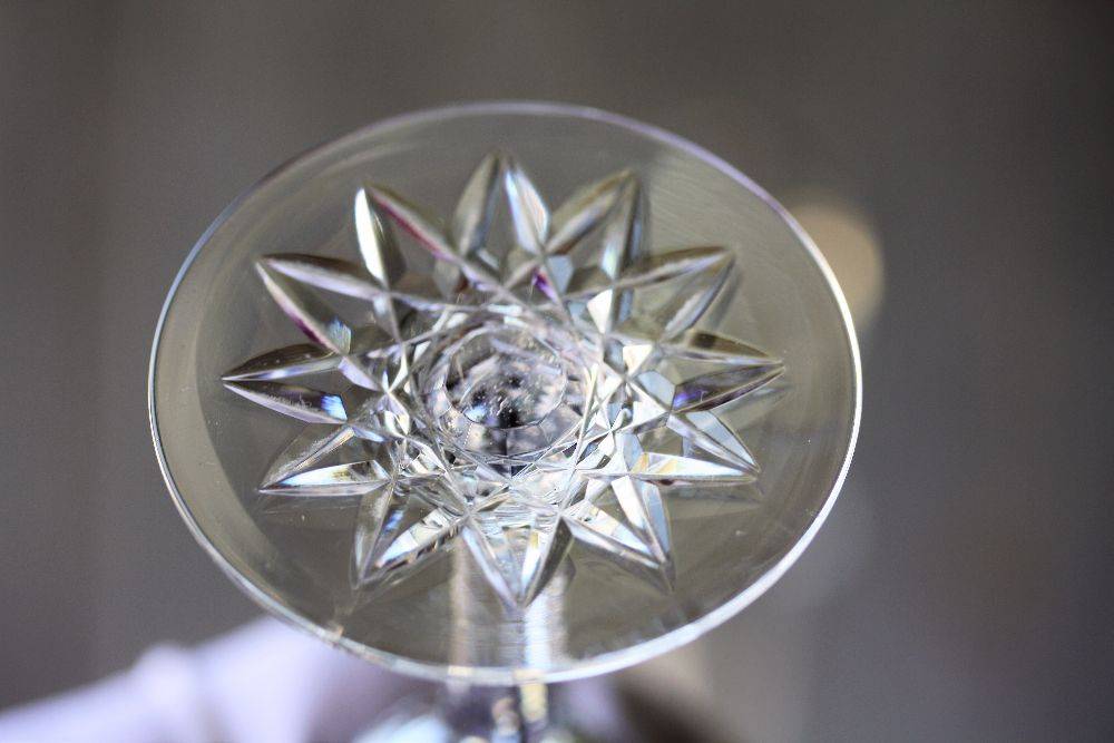 Calice en cristal « demi-fort » de forme tulipe, tille profonde. Taille dite « diamants pierreries ».
