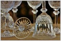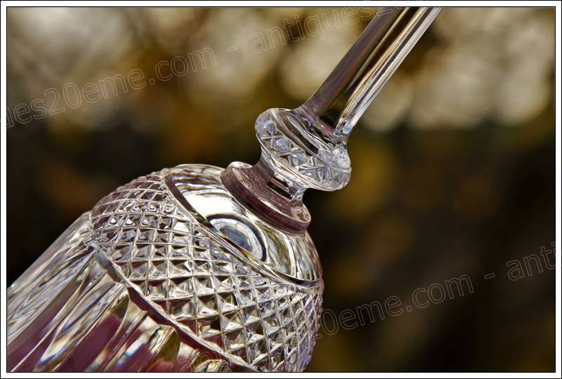 Pied en étoile, paraison taillée de diamants, biseau et cordon de perles façonné par 10 verriers, taillé par 5 autres. Le verre demande 10 jours de fabrication.