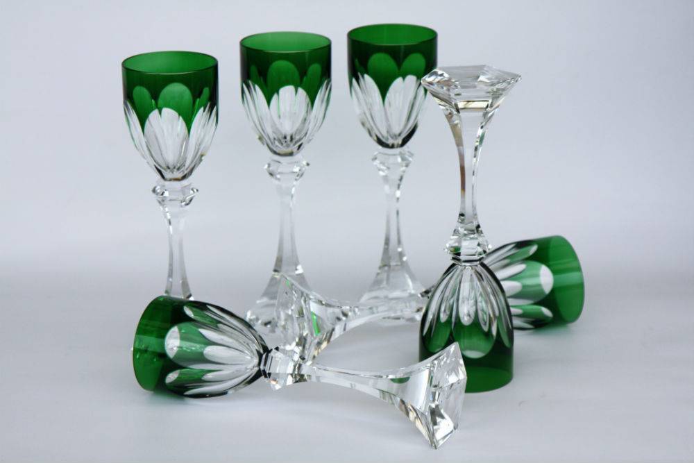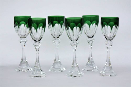 6 verres à vin du Rhin (Roemer) en cristal de Saint Louis.
