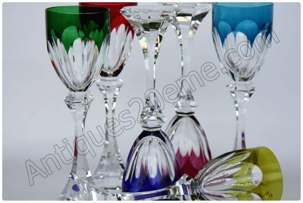 Série de 6 verres à vin du Rhin Roemer en cristal doublé de St Louis modèle Chambord